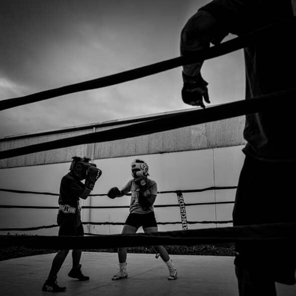 Boxing is a combat sport where two participants wearing protective gloves throw punches at each other in a ring, aiming to score points or achieve a knockout. Through bag work, sparring, and drills, you'll get a full-body workout while learning self-defense.
